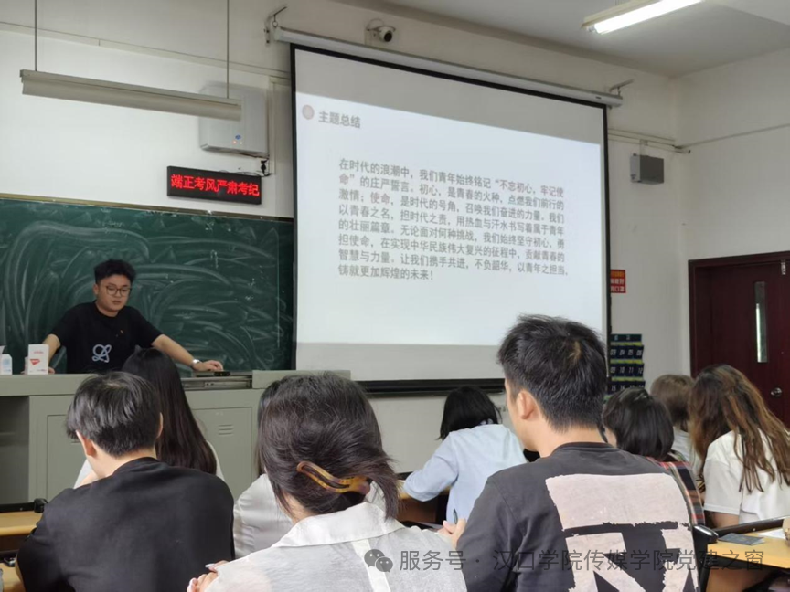 2025年5月16日中午12点10分二号教学楼2223教室,传媒学院学生第二党支部书记付言杰书记以“承初心担使命 青春勇作为”为主题讲授专题党课,第42期入党积极分子全体参与。