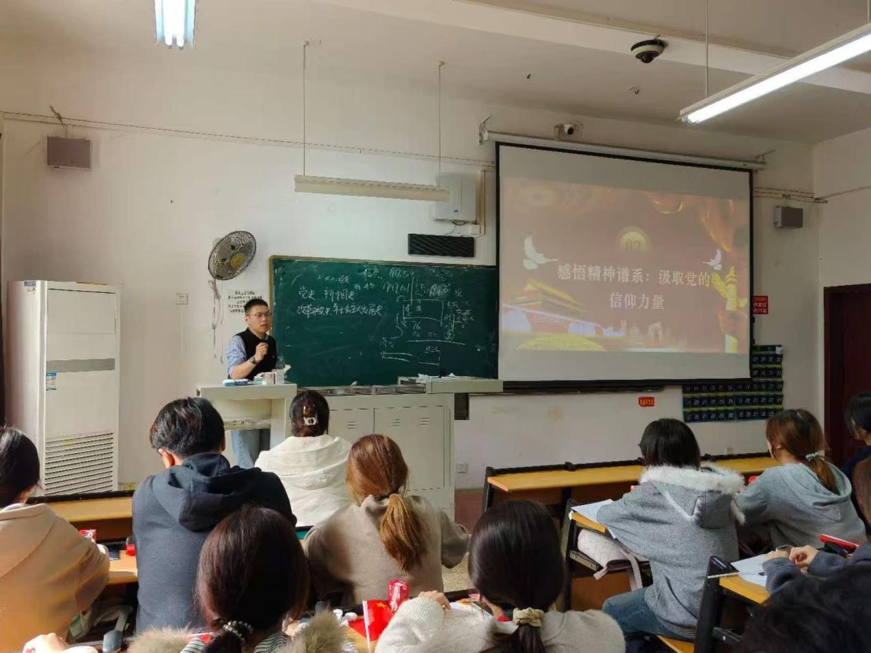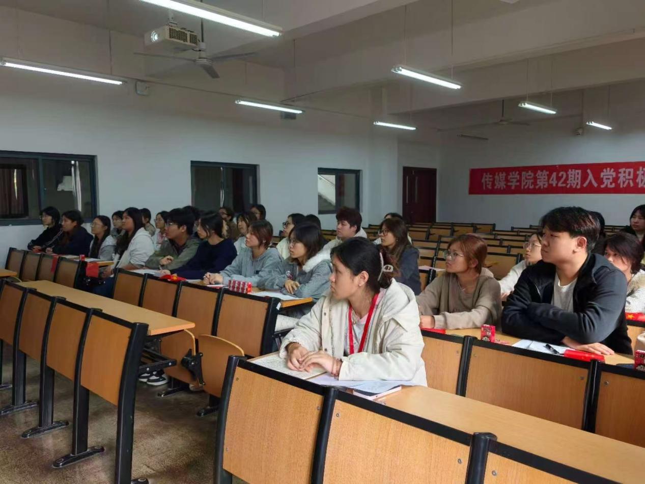 2025年10月31日中午,传媒学院党总支在二号教学楼2223教室开展第42期入党积极分子主题教育活动。本次活动以“深学百年党史,筑牢思想根基”为主题,由杨虎老师主讲专题党课,旨在引导入党积极分子从百年党史中汲取智慧力量,夯实信仰之基,明晰青年在新时代的责任与方向。