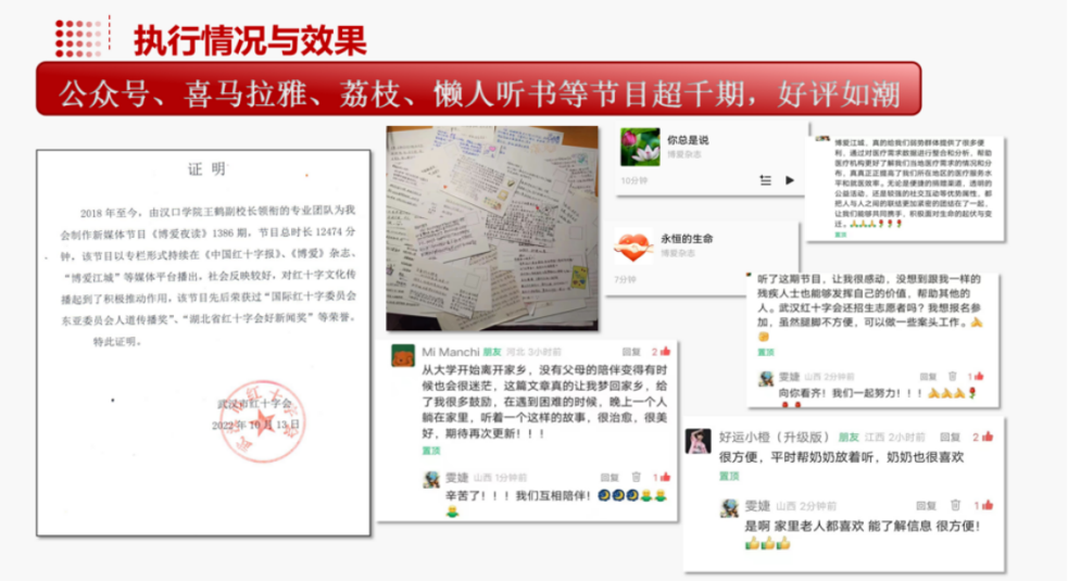 她参与的项目与武汉市红十字会深度合作,打造 “博爱江城” 小程序,有效解决公益捐赠透明化痛点,小程序月活跃用户达 7.3 亿;针对视障人士及老年人阅读困境,发起 “博爱夜读” 项目,累计制作音频内容 1300 余期,总播放量突破 800 万次;作为 “茶宝博士” 项目学生负责人,与团队成员创新搭建 “四校两企一政” 协同合作模式,预计本年度助力农户增收超 200 万元;同步开设 “茶果画童年” 公益课程,聚焦乡村学生美育教育,践行教育公益理念。