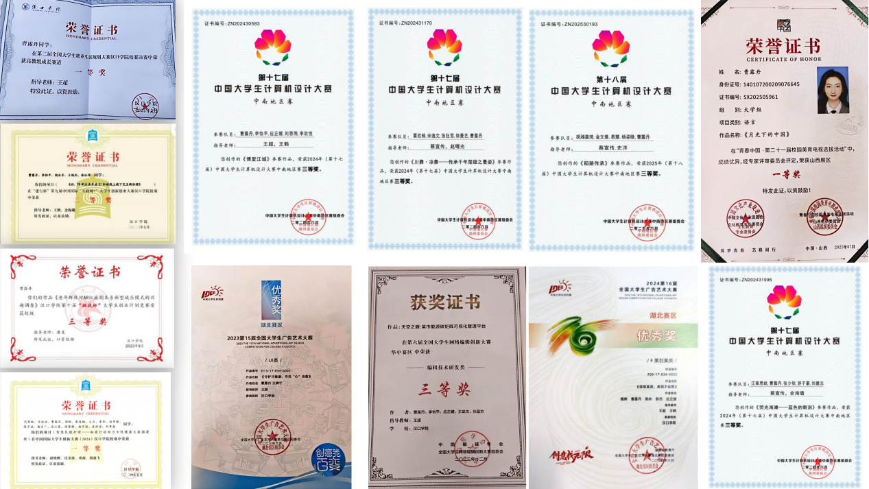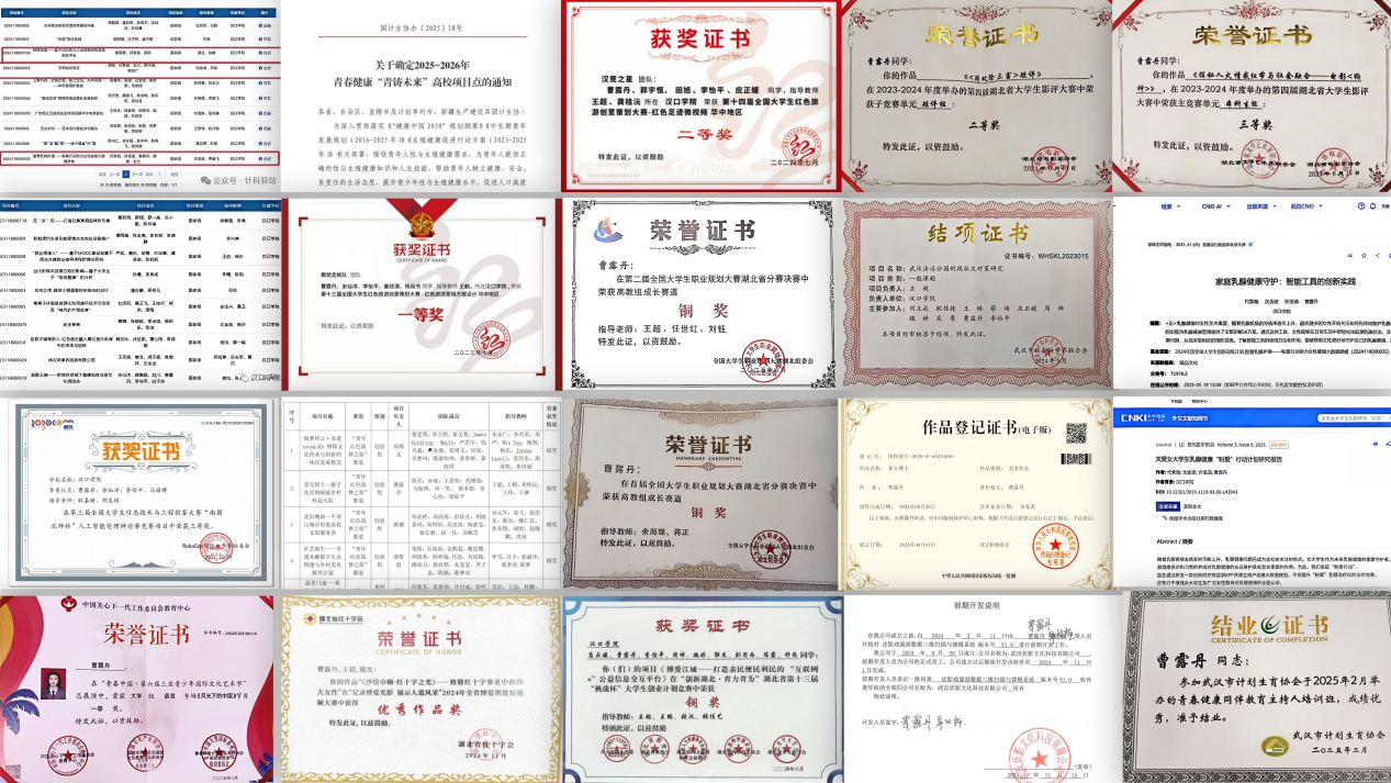 从竞赛赛场到科研阵地,她始终保持敢闯敢拼的劲头,荣获国家级奖项及荣誉19项,省级奖项及荣誉24项,校级奖项及荣誉17项。作为汉竞之星科研小组队长,在指导教师的带领下,她与15 位同伴横跨 6 个专业 “跨界攻坚”,从皮影戏创新传承,到关注女性乳腺健康,从外观专利的申请,到课题立项,他们用 “数据洞察” 破解难题,用 “跨界协作” 创造可能。