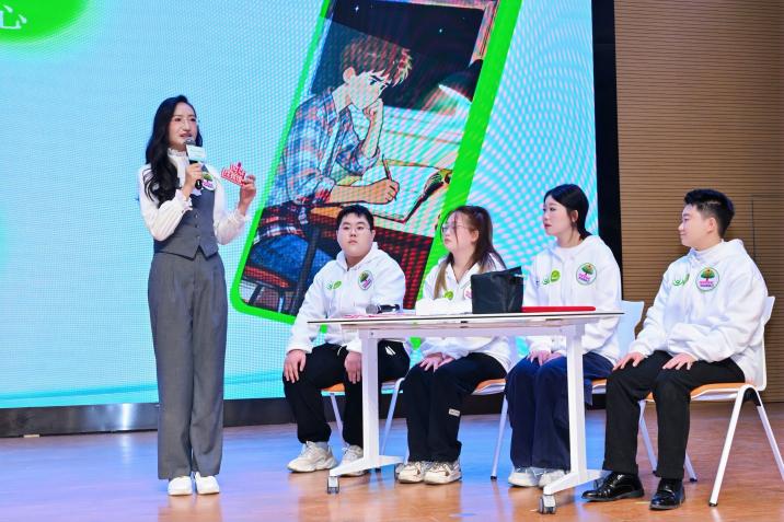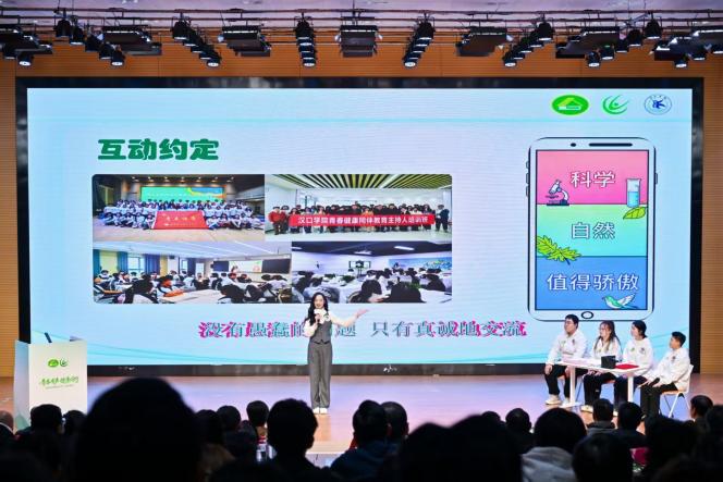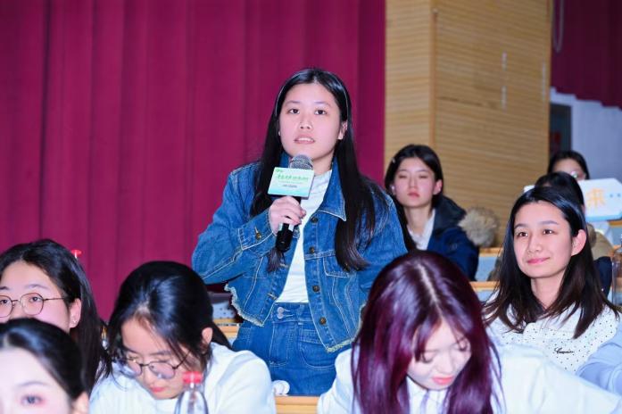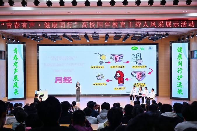 作为我校中国计划生育协会青春健康“青铸未来”高校项目学生负责人暨1号参赛选手,曹露丹带来了题为《经精“友”道》的创新微课,以轻松活泼的方式为现场观众科普青春期生理知识。课堂伊始,曹露丹便与现场志愿者共同约定“没有愚蠢的问题,只有真诚的交流”呼吁大家大胆提问,并准备了文创挂件与定制文化衫,鼓励大家积极互动。在知识讲解环节,她善用生动比喻:将子宫形容为身体的“智能系统”,把月经比作一份“月度健康报告”;又将男性身体喻为高效的“生命工厂”,解释遗精是身体“自动清仓”的自然过程,从而轻柔化解了青少年对生理变化的困惑与羞耻感。