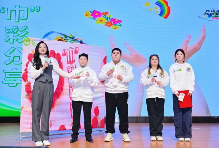 随后的趣味问答环节,她引导观众共同探讨如何关怀经期女性、如何正确看待遗精现象,推动健康认知在交流中生根。而“巾”彩设计环节更是整场微课的亮点:曹露丹组织参与者以过期卫生巾为画布,围绕“勇气与关爱”进行主题创作。大家自由创作了太阳、盾牌等富有寓意的作品,不仅为卫生巾“正名”,更悄然打破了长期存在的“月经羞耻”。