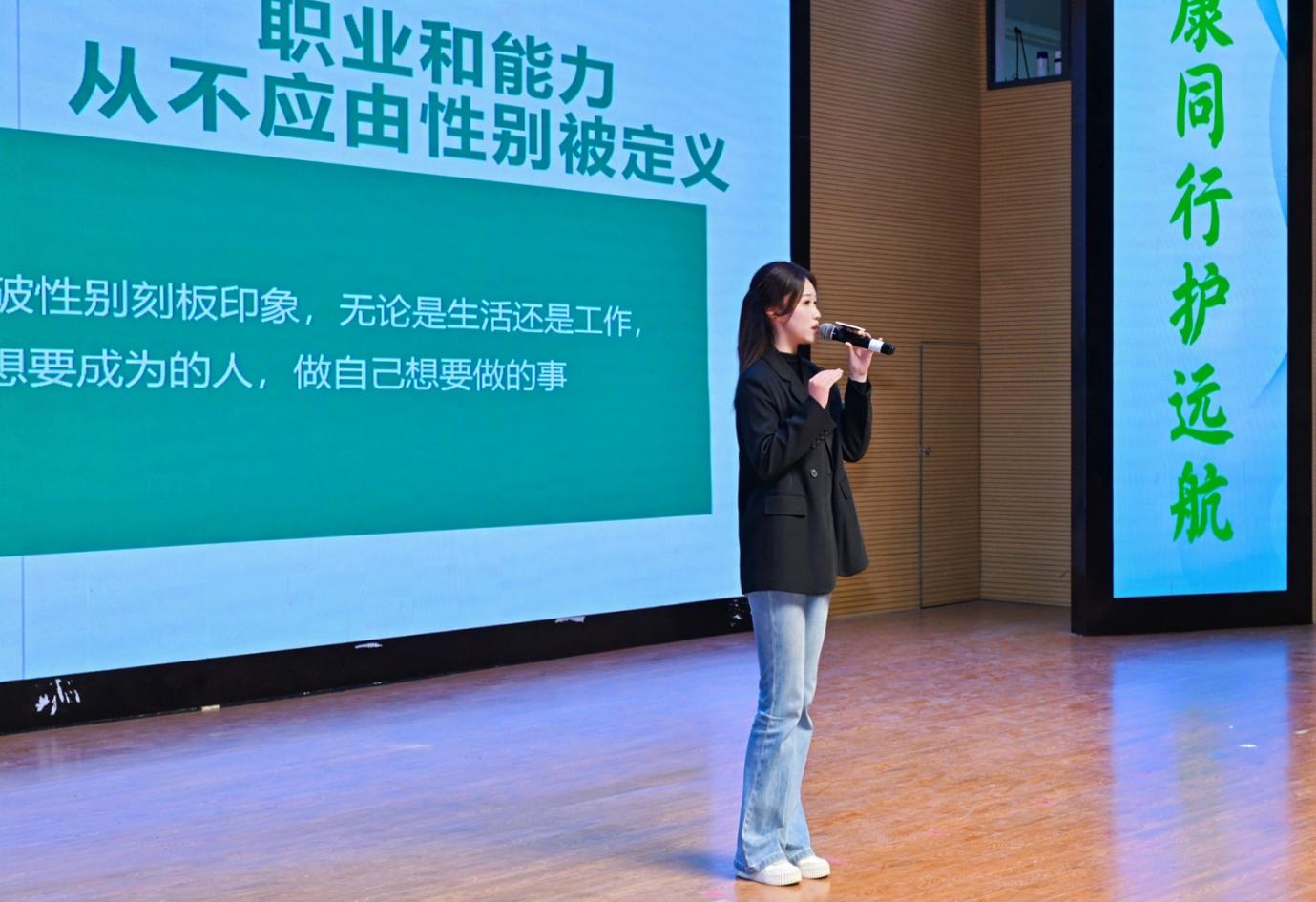 5号参赛选手、我校青春健康同伴社社长张雨彤,以一场八分钟的“性别不设限”快闪课堂,瞬间点燃全场。课堂伊始,张雨彤直指那些深植于大众心中的性别标签,将其喻为束缚个人成长的“隐形牢笼”。