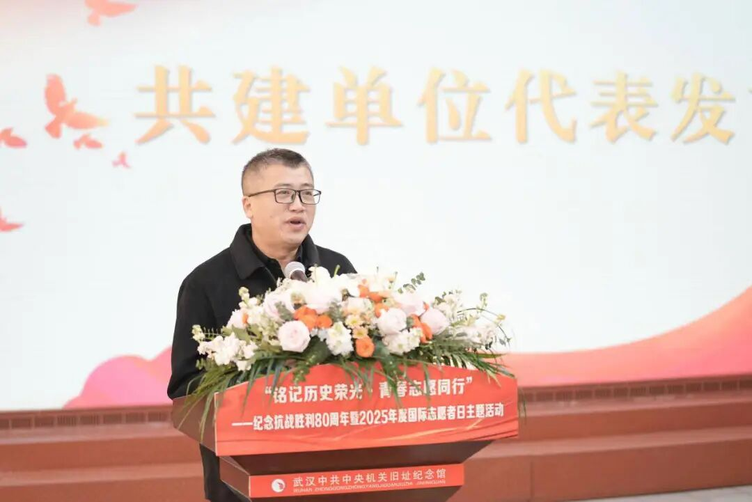 在纪念中国人民抗日战争暨世界反法西斯战争胜利80周年之际,武汉中共中央机关旧址纪念馆于2025年国际志愿者日隆重举办“铭记历史荣光·青春志愿同行”主题活动。汉口学院传媒学院作为共建单位受邀参加,副院长王超代表学院发言,并与各界嘉宾共同见证红色精神与志愿服务的深度融合。
