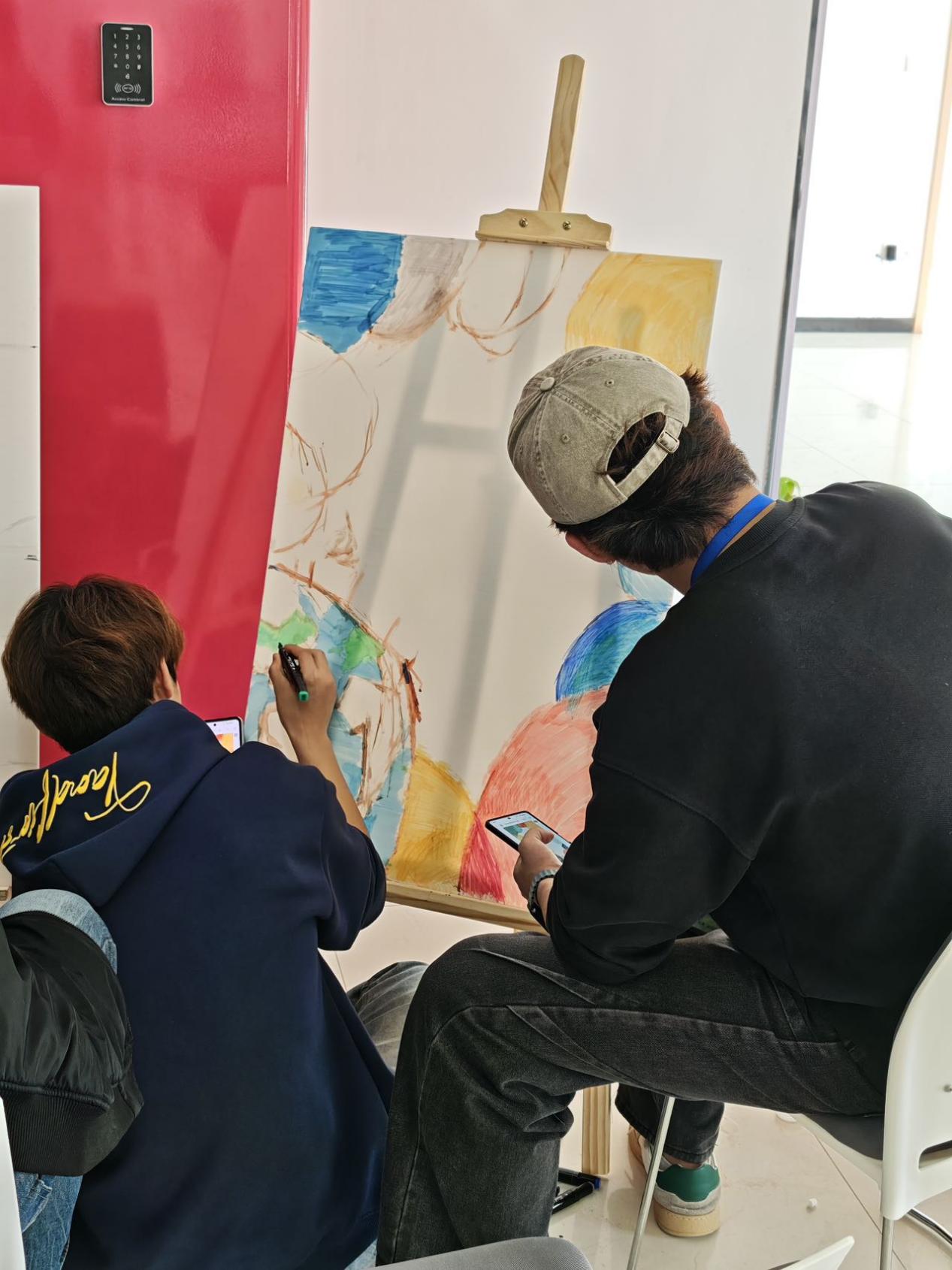 落叶拓印区则是自然与艺术的浪漫邂逅。志愿者们细心收集校园内自然掉落的完整树叶,利用树叶的独特纹理,蘸取颜料、轻压拓印,将自然之美定格在画布之上。原本飘落的落叶,在传媒学子的创意巧手下焕发新生,一幅幅生动的拓印作品,尽显自然肌理与艺术创意的融合之美。所有作品后续将装裱展示于传媒楼一楼大厅,打造校园专属自然艺术角,让更多人感受自然与艺术的双重魅力。