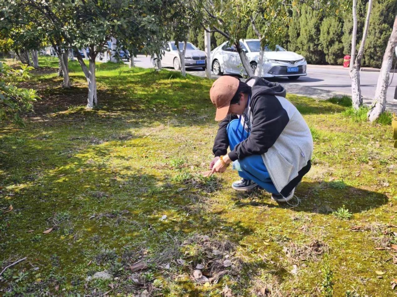 本次志愿行动将创意创作与护绿实践深度融合,设置了创意树牌绘制、落叶拓印创作、枯枝修剪养护三大特色环节,志愿者们分组协作、各司其职,在校园里勾勒出一幅春日护绿的美好画卷。