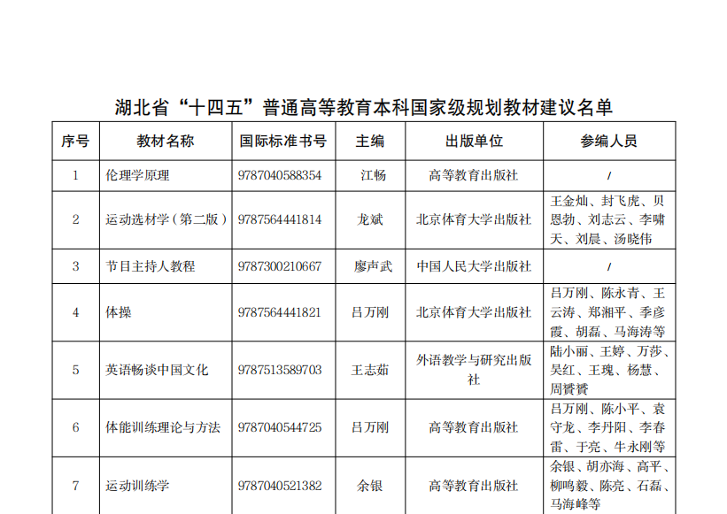 根据《教育部办公厅关于开展“十四五”普通高等教育 本科国家级规划教材第一次遴选工作的通知》(教高厅函 〔2024〕9 号)、《省教育厅办公室关于开展“十四五”普通高等教育本科国家级规划教材第一次申报推荐工作的通知》要求,经各高校申报、资格审查、专家评审公示等程序最终确定。