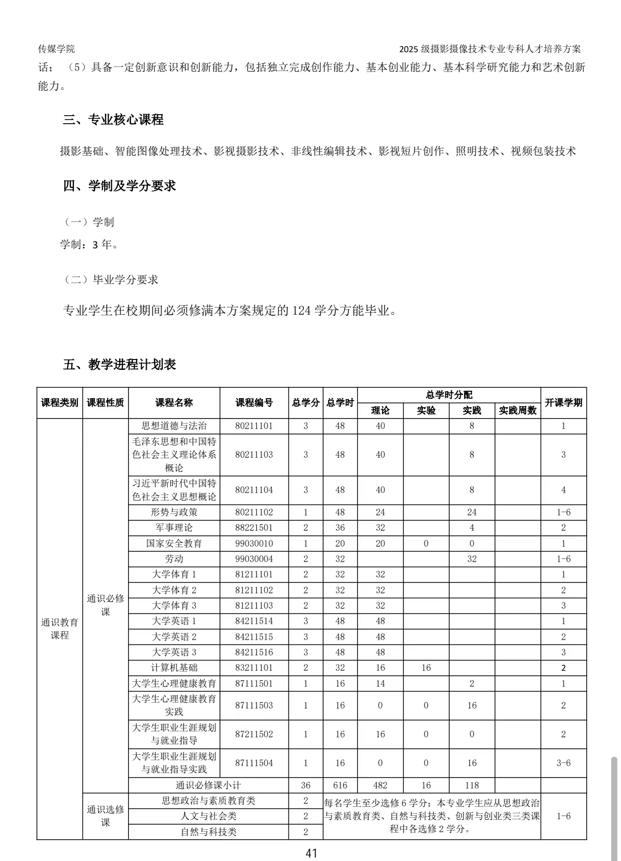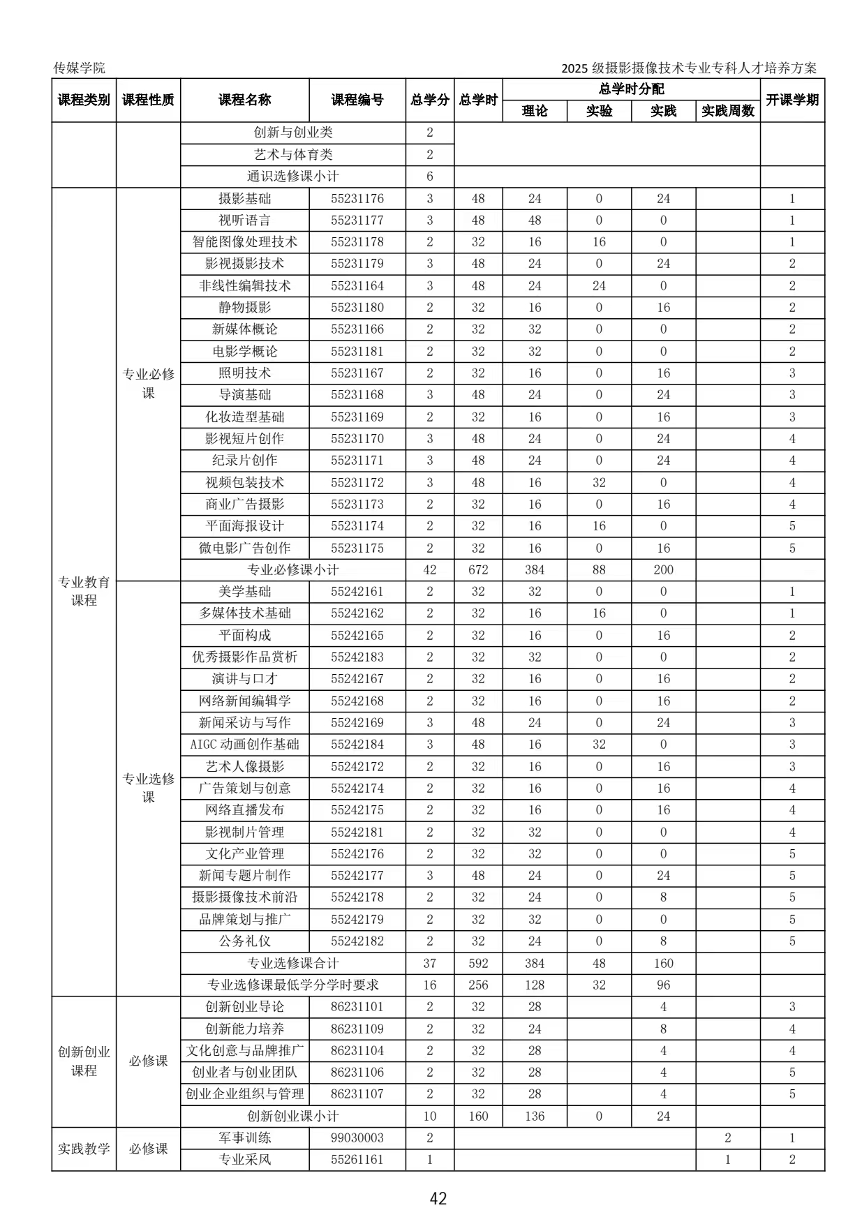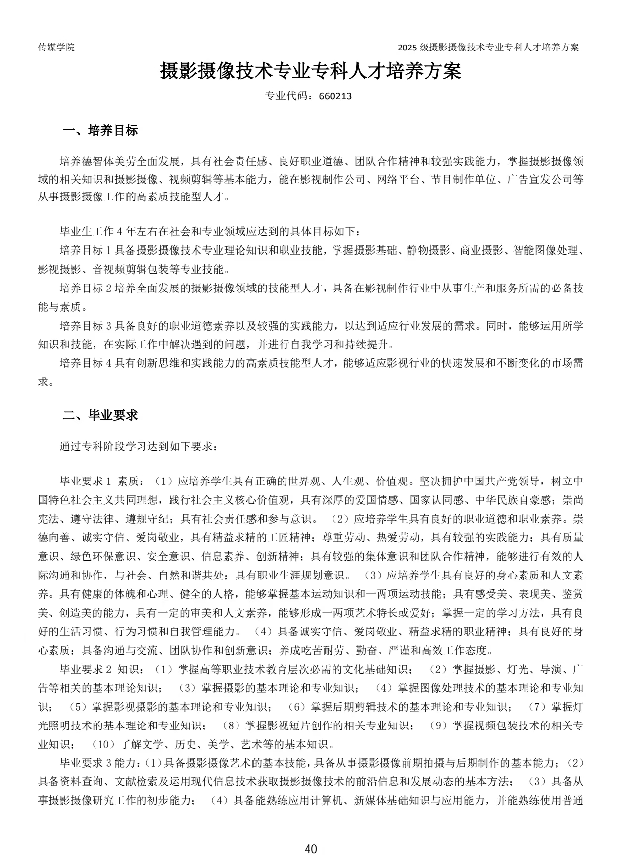 2024级摄影摄像技术专业专科人才培养方案