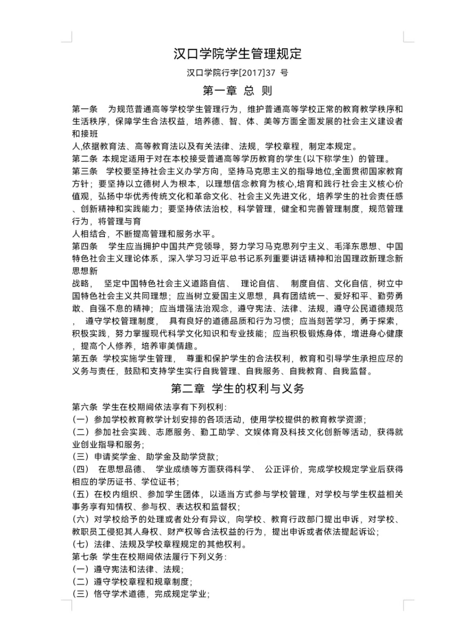 汉口学院学生管理规定