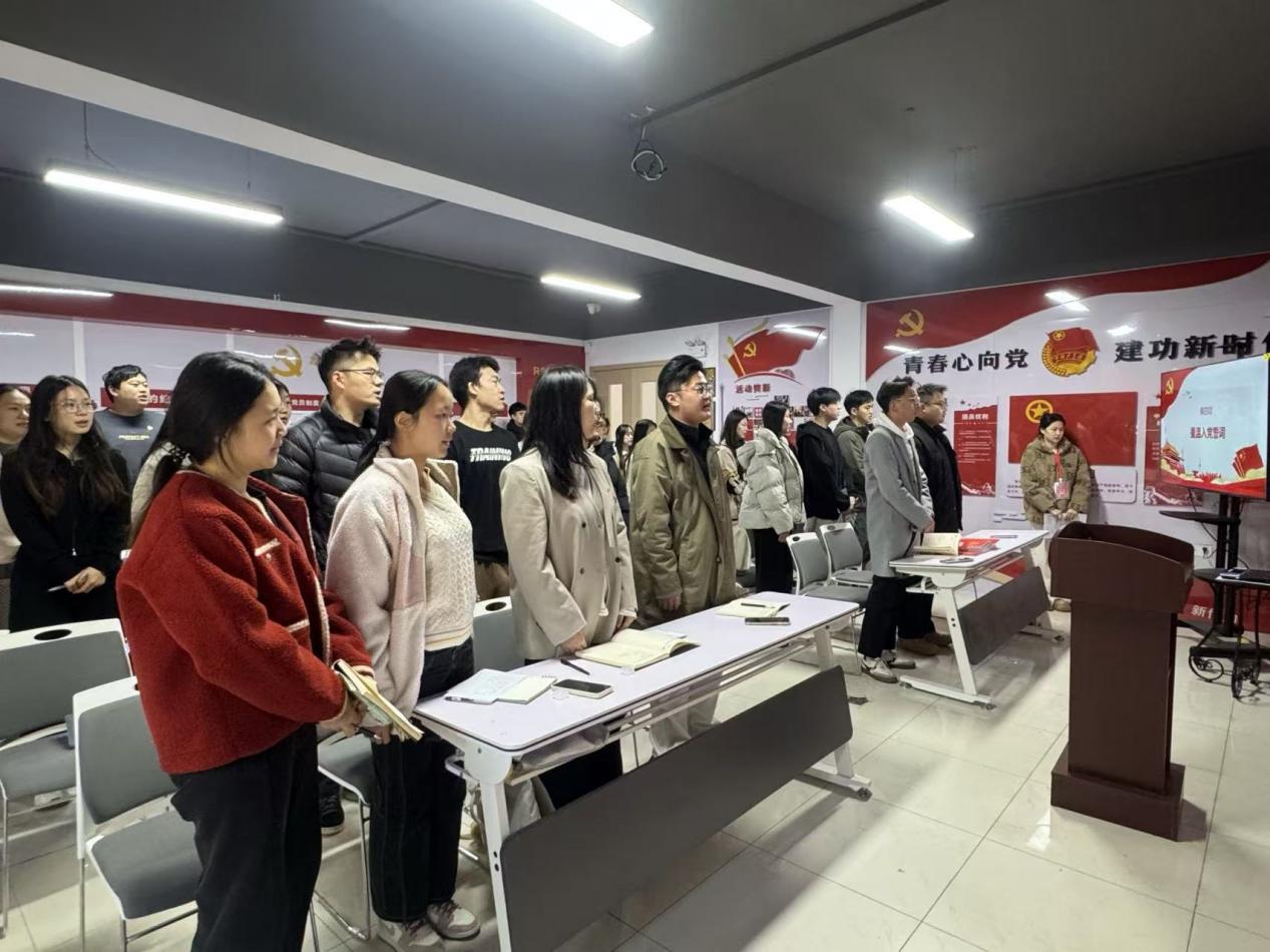 活动伊始,党务助理严谨通报本次党员到会情况及11月份党费缴纳明细,严格落实组织生活规范要求,确保活动有序开篇。随后,全体与会人员肃立致敬,齐唱中华人民共和国国歌,重温入党誓词。
